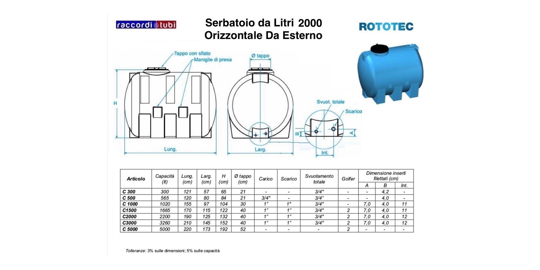 SERBATOIO ORIZZ.LT.2000 DA ESTER.ROTOTEC