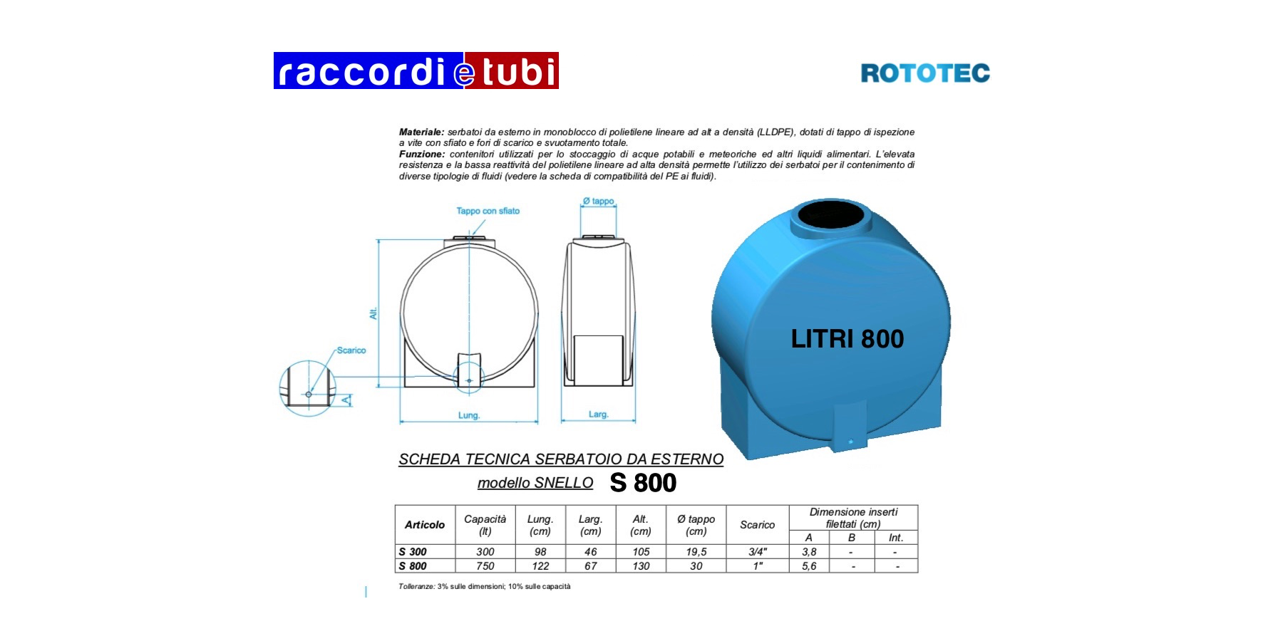 SERBATOIO SNELLO LT.800 S800 ROTOTEC