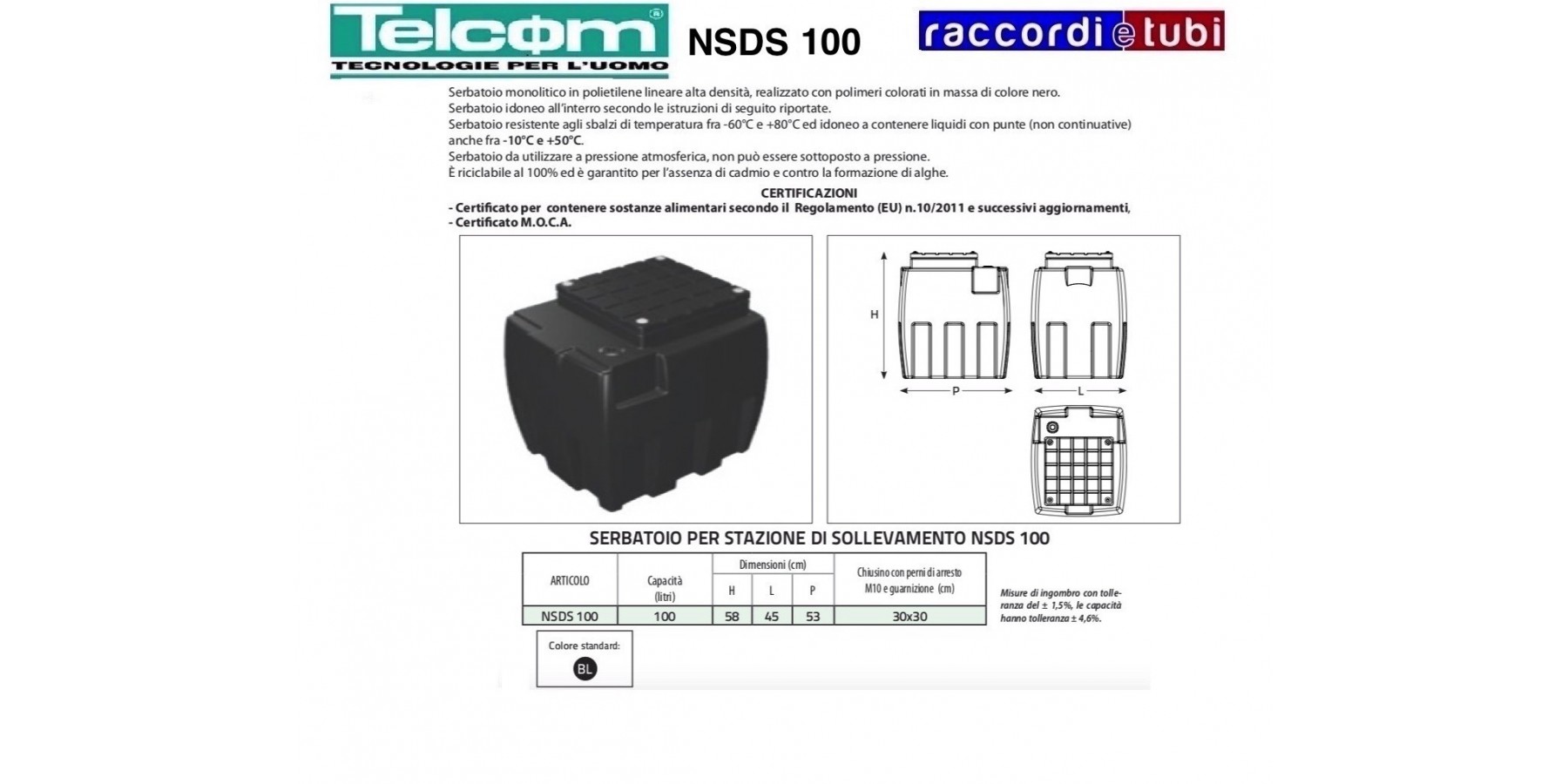 TELCOM SERBATOIO PER STAZIONE DI SOLLEVAMENTO NSDS100