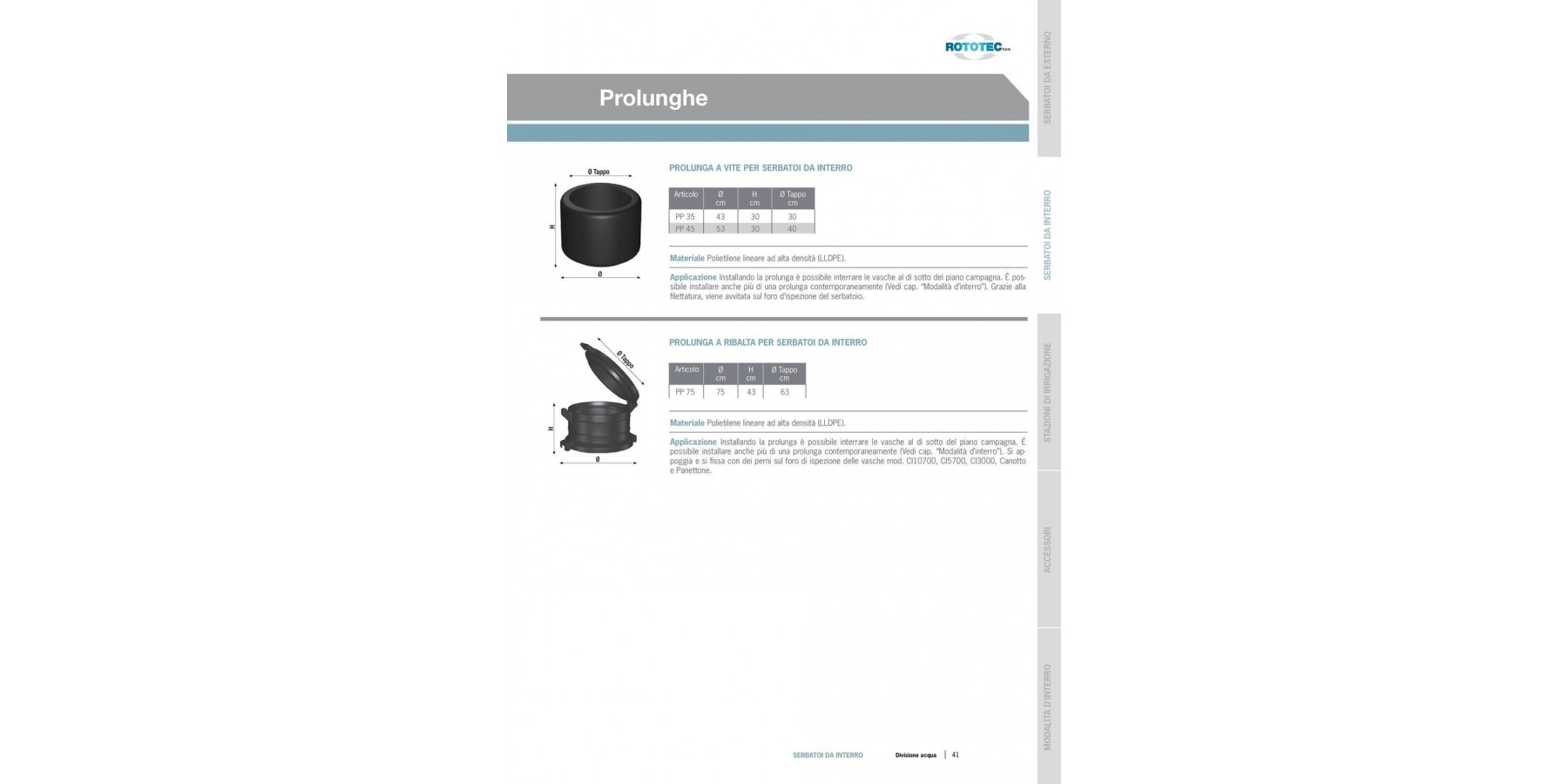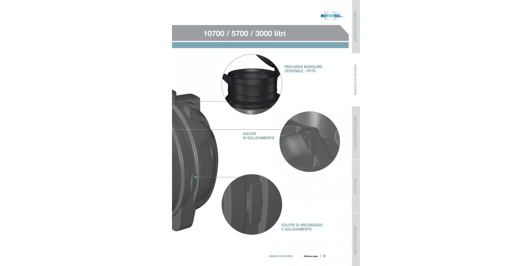 Applicazione: Installando le prolunghe è possibile interrare I SERBAOIT al di sotto del piano campagna. È possibile installare anche più di una prolunga contemporaneamente (Ved. cap su modalità d’interro).