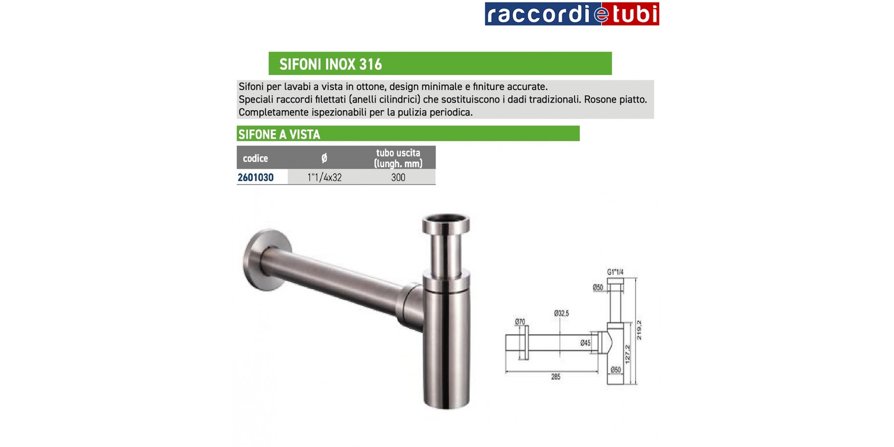 SIFONE CILINDRICO RIVERE A VISTA 11/4''x32mm INOX 316