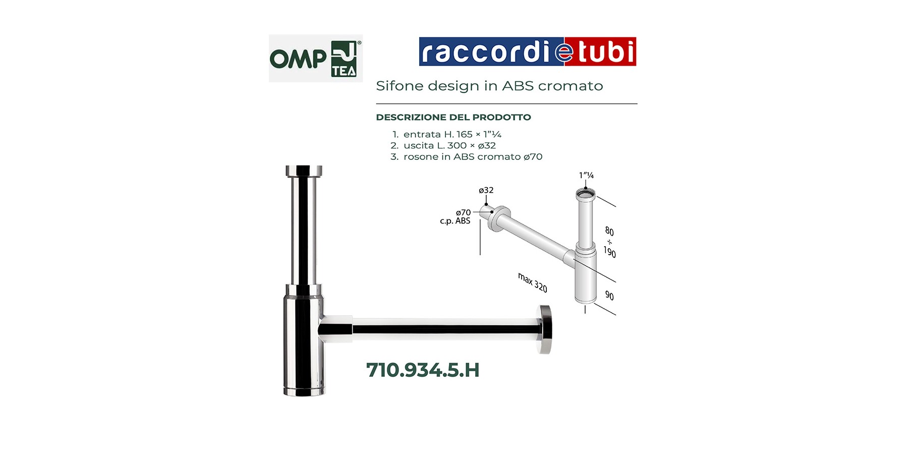 SIFONE A VISTA CILINDRICO IN ABS CROMATO DIAMETRO 11/4''x32mm