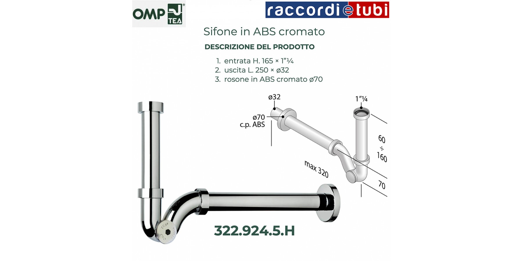 SIFONE A ''S'' IN ABS CROMATO DIAMETRO 11/4''x32mm