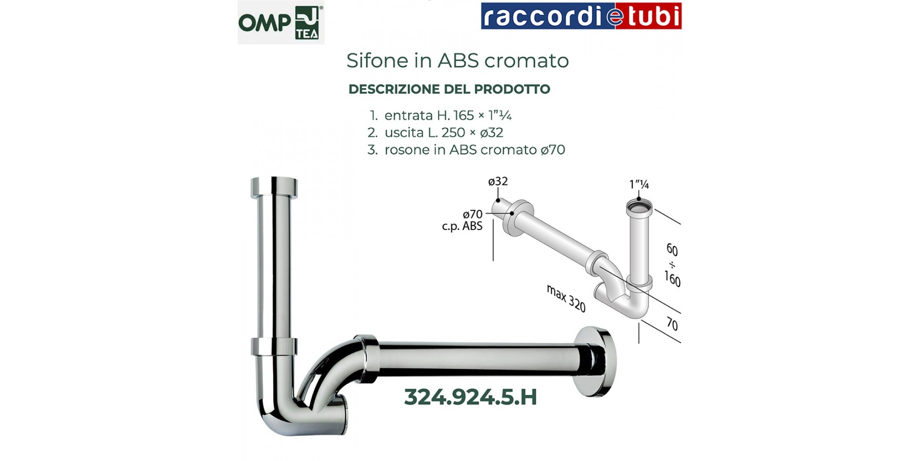 SIFONE A ''U'' IN ABS CROMATO DIAMETRO 11/4''x32