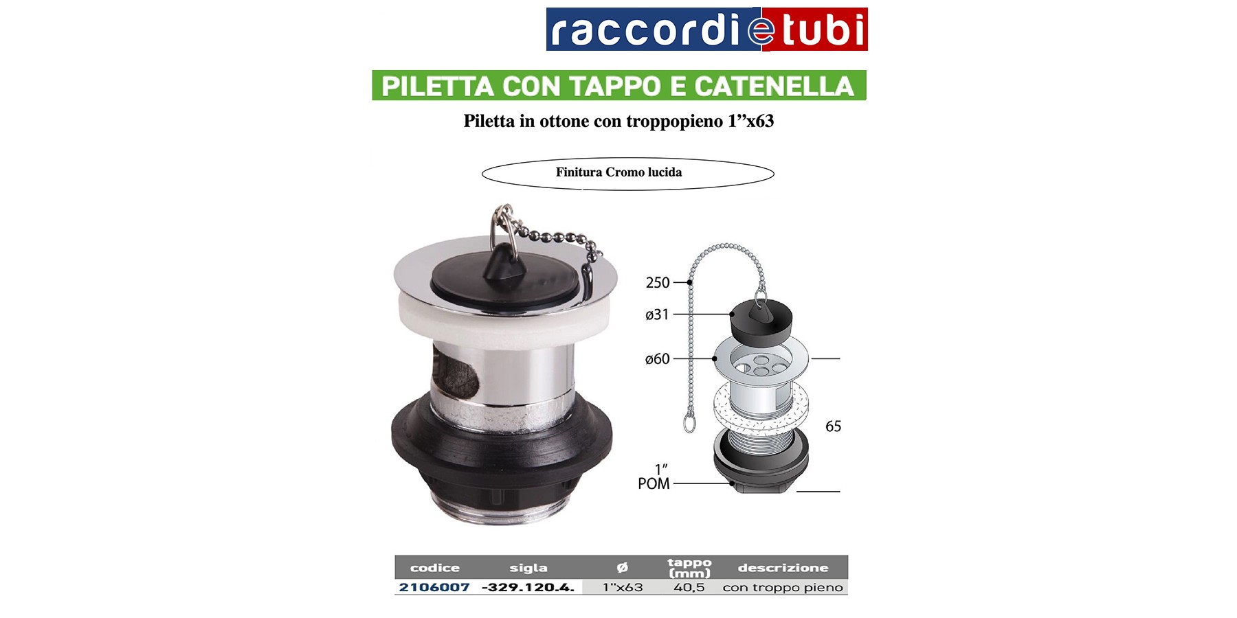 PILETTA 1"X63 CON TROPPOPIENO TAPPO E CATENA