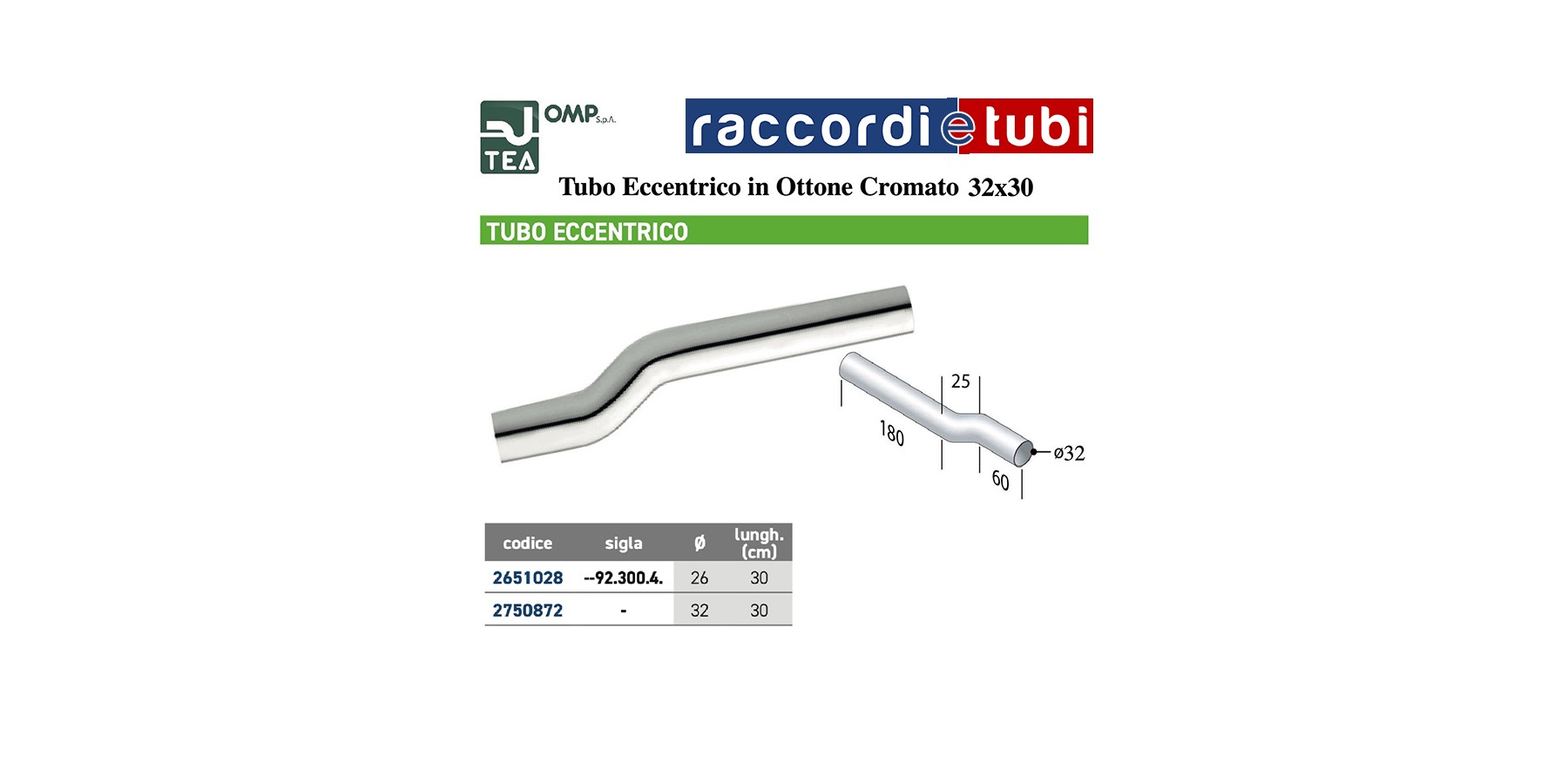 TUBO ECCENTRICO IN OTTONE CROMATO DIAMETRO mm.32 LUNGHEZZA mm.300