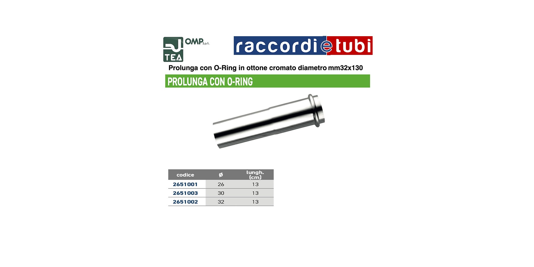 PROLUNGA IN OTTONE CROMATO 32X130mm CON ORING