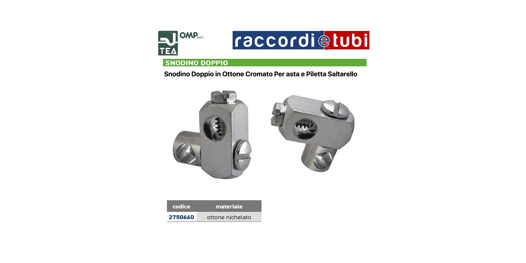 SNODINO DOPPIO OTTONE CROMATO DIAMETRO FORI 6,2x6,2mm