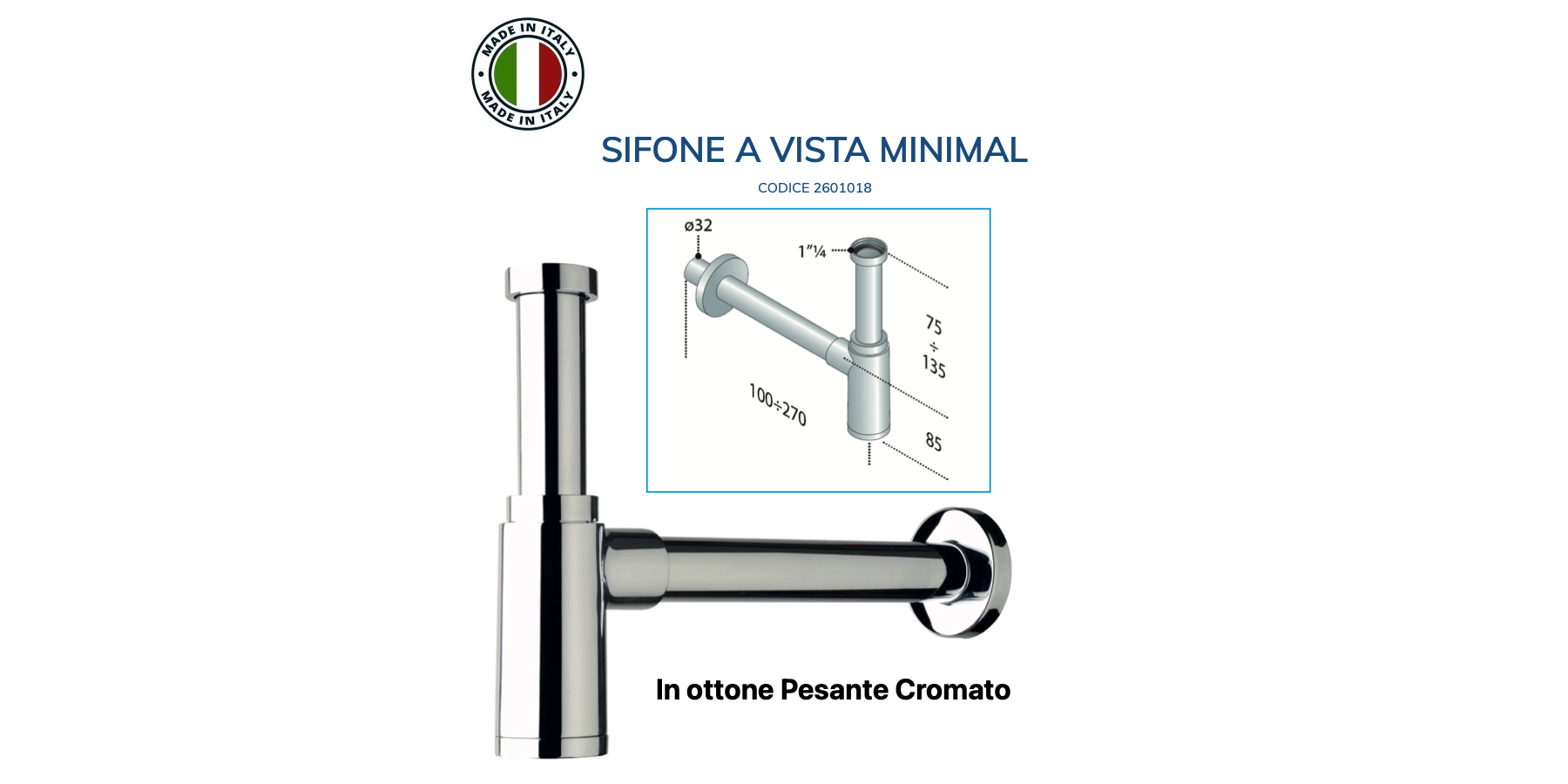 SIFONE CILINDRICO MINIMAL IN OTTONE PESANTE CROMATO 1.1/4X32