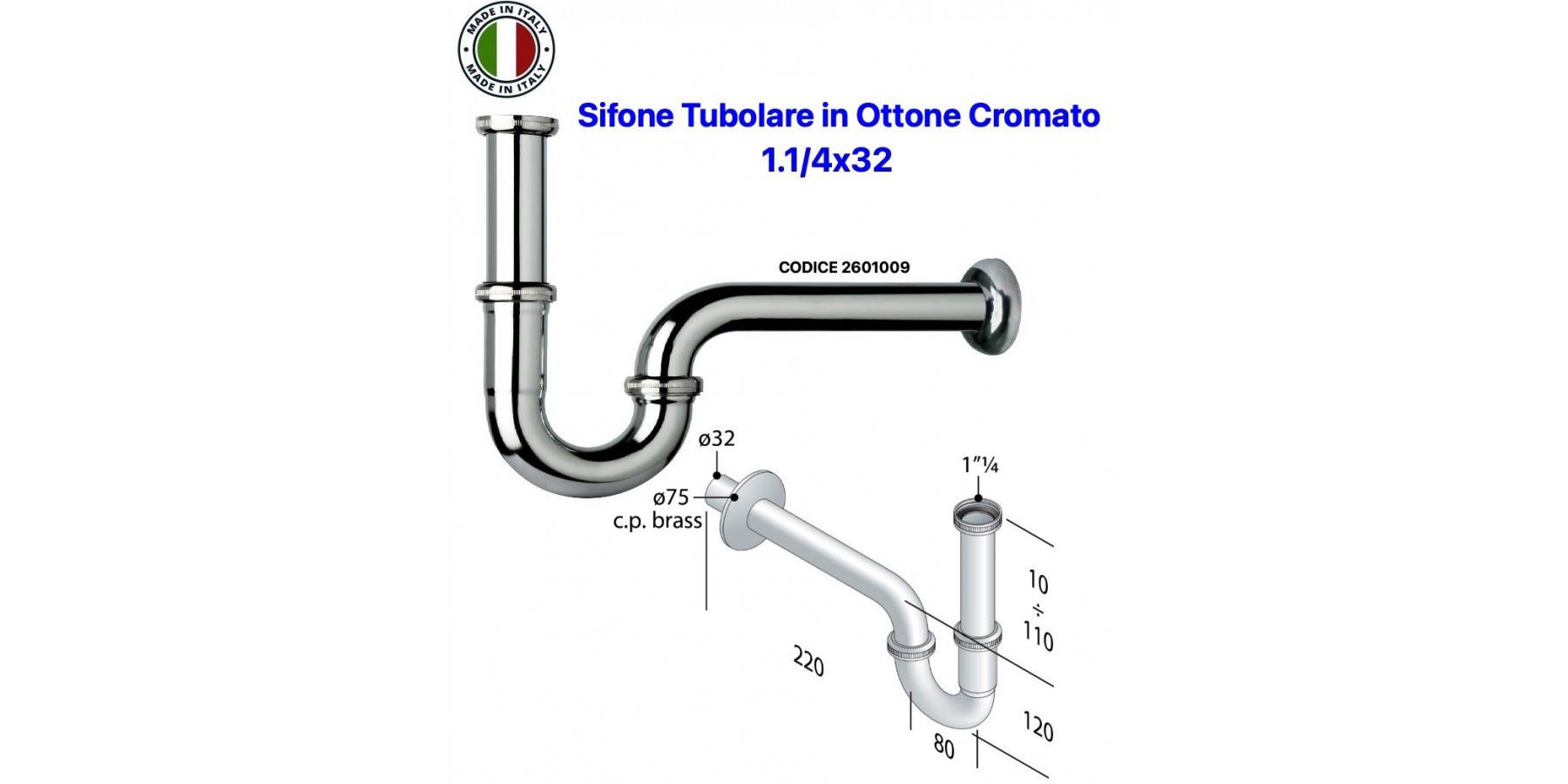 SIFONE TUBOLARE A "S" DA LAVABO 11/4''x32 IN OTTONE CROMATO