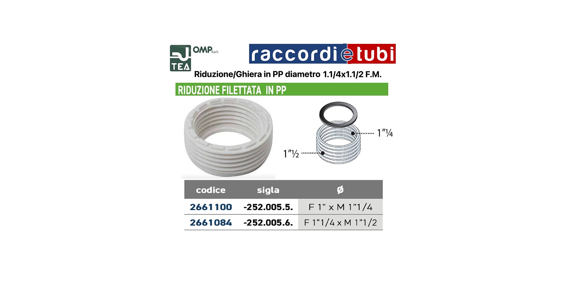 RIDUZIONE/GHIERA FILETTATA IN PP DIAMETRO F.11/4''x1.1/2M.