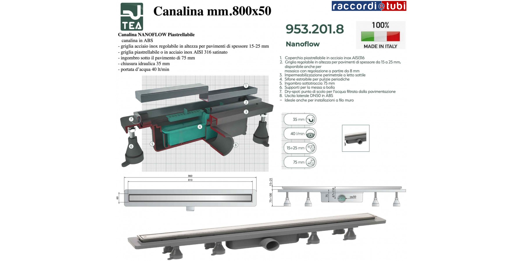- copertura piastrellabile in acciaio inox AISI 316 regolabile in altezza