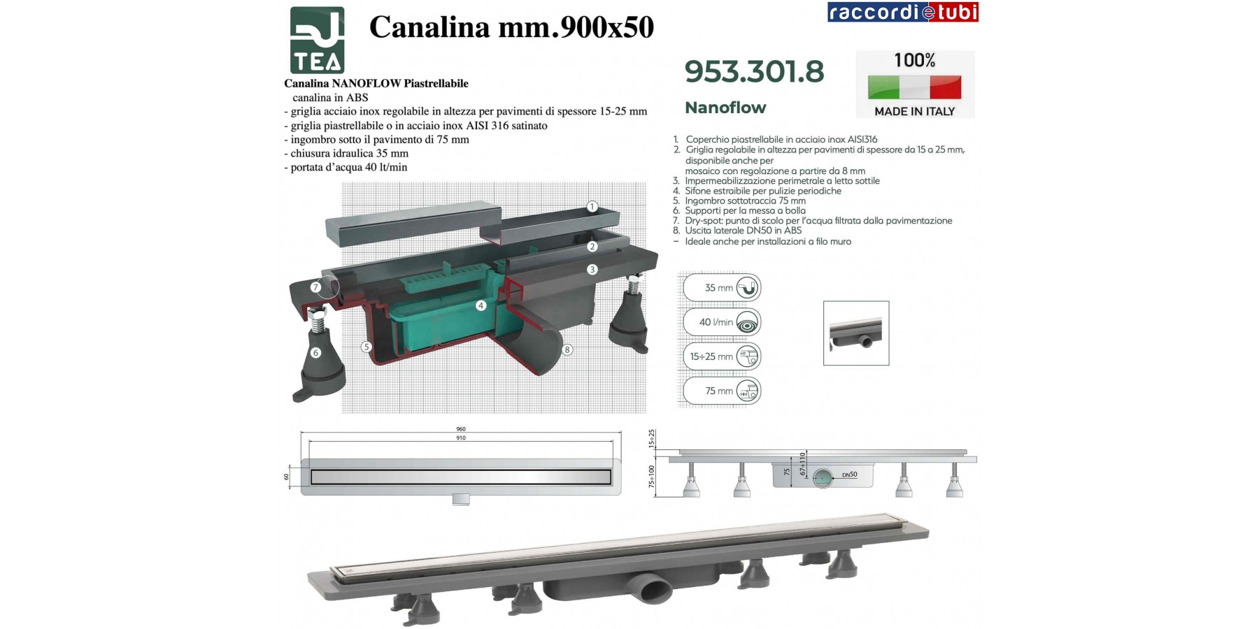 - copertura piastrellabile in acciaio inox AISI 316 regolabile in altezza