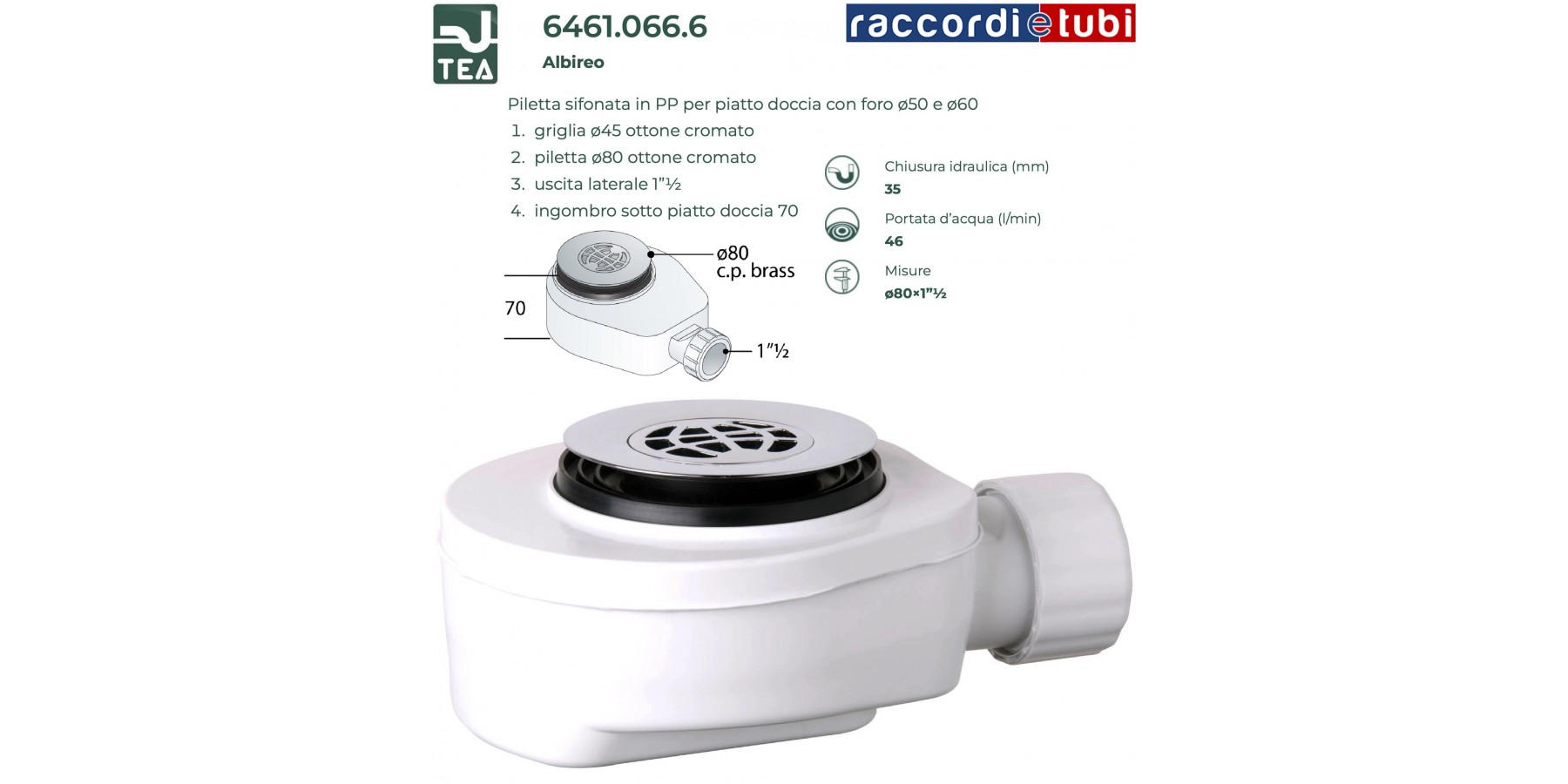 Griglia D.45 in ottone cromo, sifone e cestello ferma-capelli amovibili, uscita con