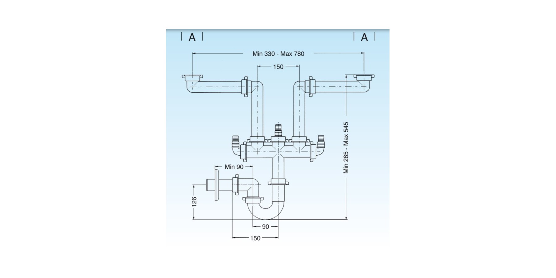 Sifone salvaspazio per lavelli a due vasche diametro 1.1/2x40