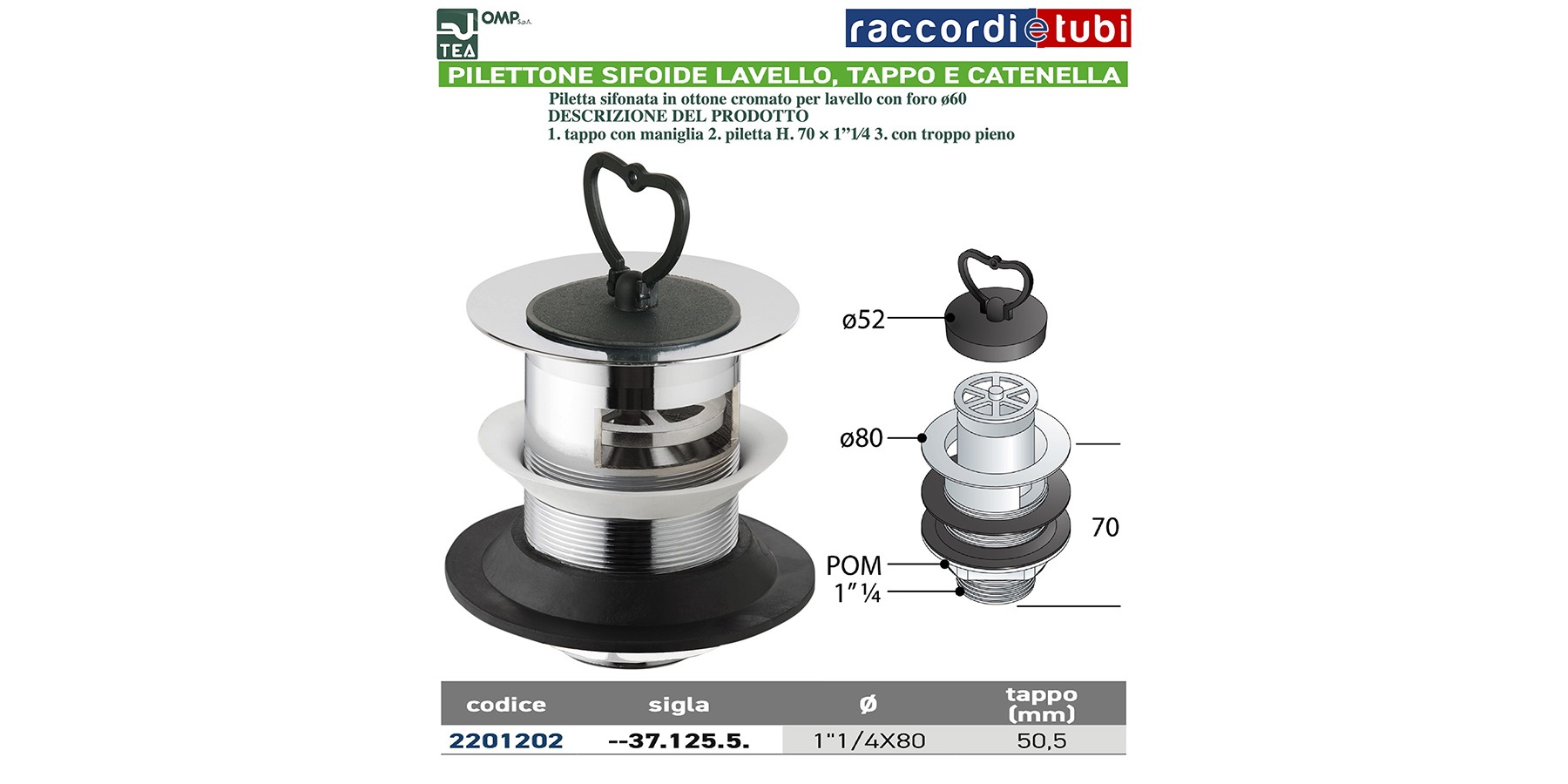 PILETTONE SIFOIDE LAVELLO D.11/4''x80mm IN OTTONE CROMATO