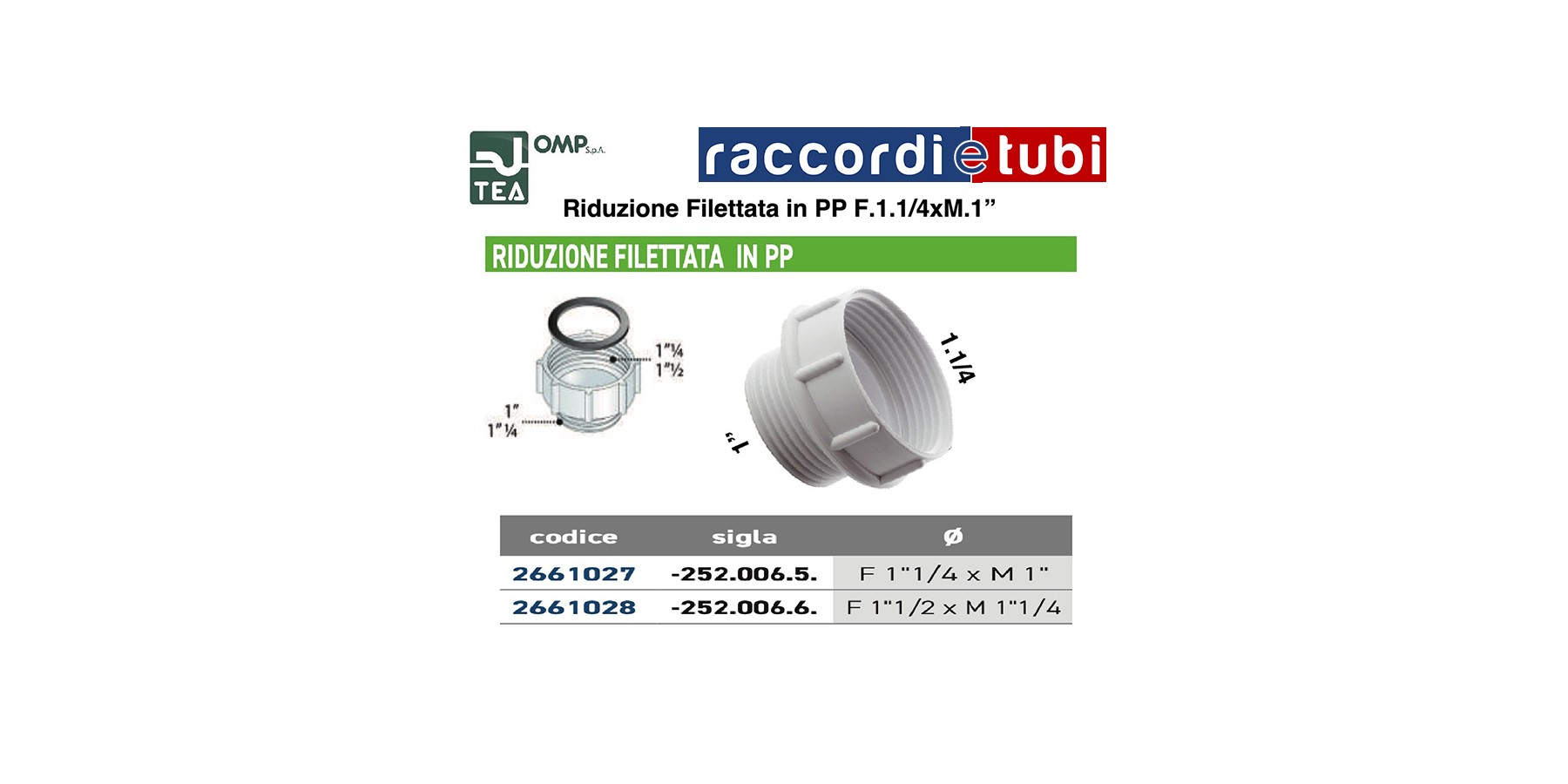 RIDUZIONE FILETTATA IN PP F. 1".1/4 X M. 1"