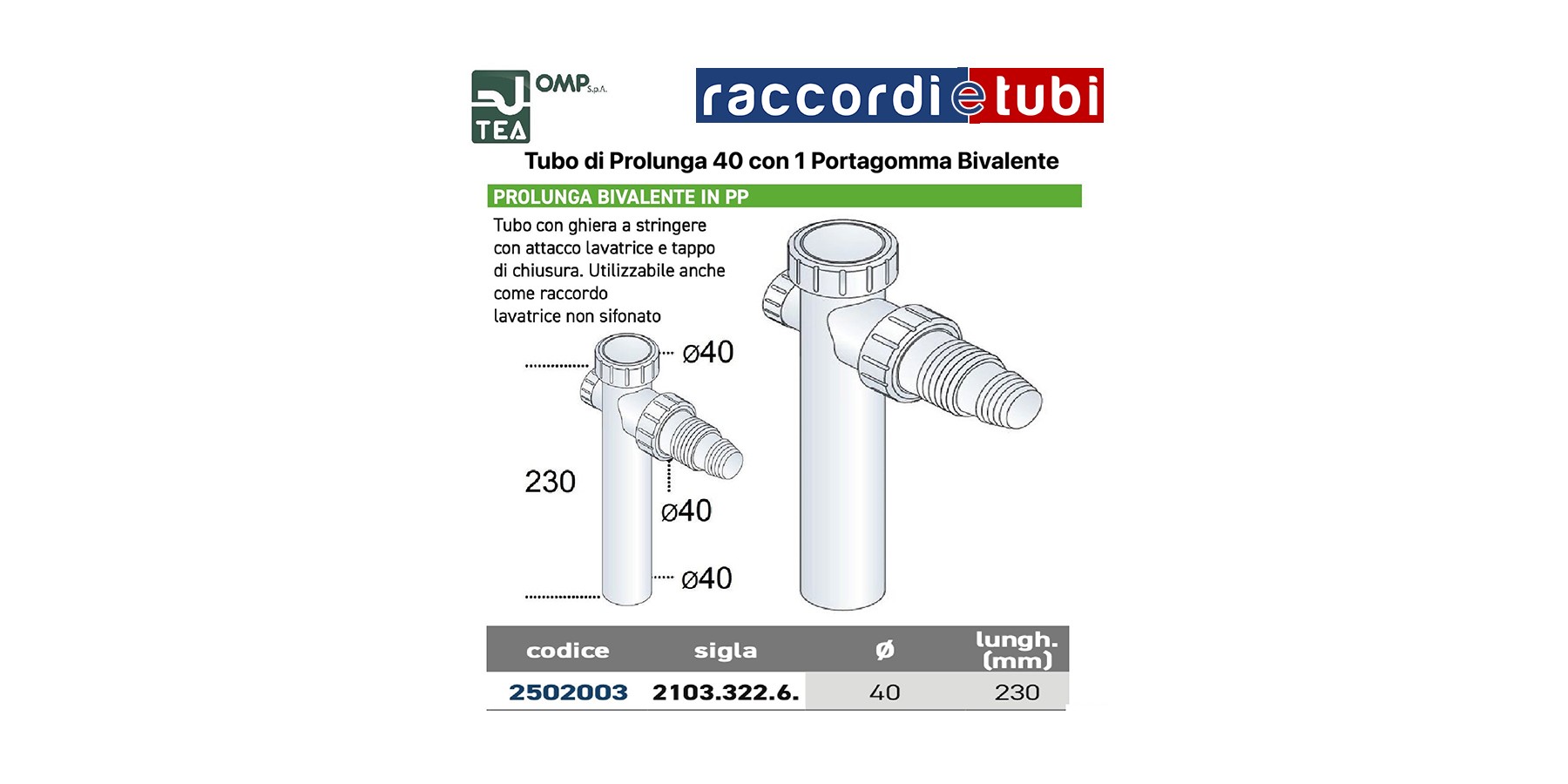 PROLUNGA BIVALENTE IN PP40X40 MASCHIO FEMMINA LUNGHEZZA mm.230