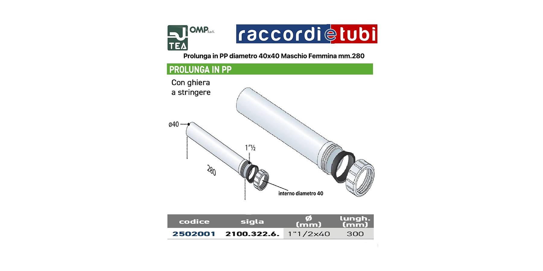 PROLUNGA IN PP 30cm DIAMETRO 40X40 MASCHIO FAMMINA