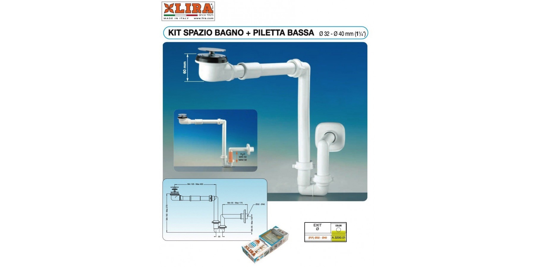 SIFONE LIRA SPAZIO LIRA BAGNO NT PILETTA BASSA 32X1.1/4 SCARICO 40 A.3200.01