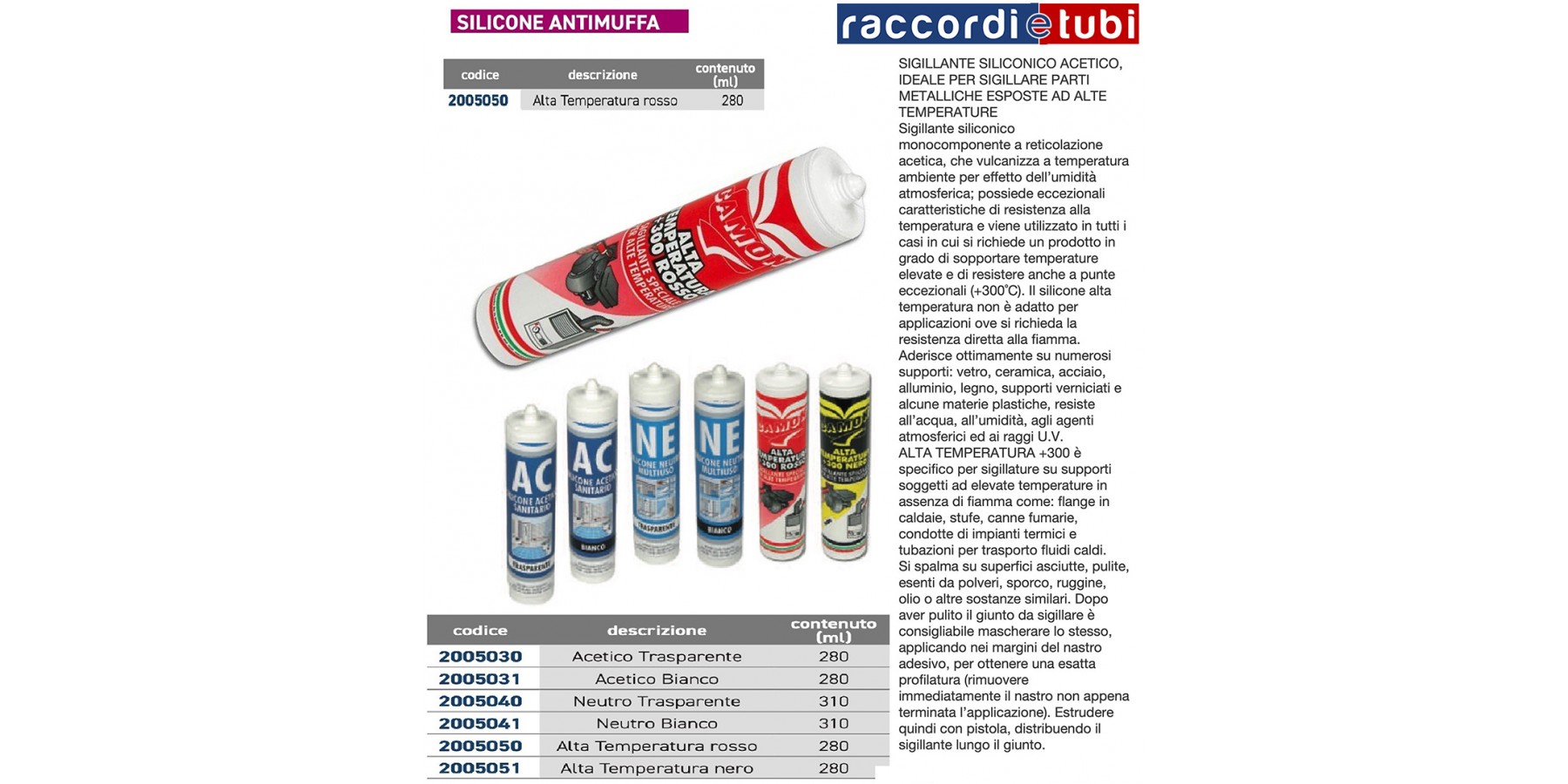 SIGILLANTE SILICONICO ACETICO, IDEALE PER SIGILLARE PARTI METALLICHE ESPOSTE AD ALTE TEMPERATURE
