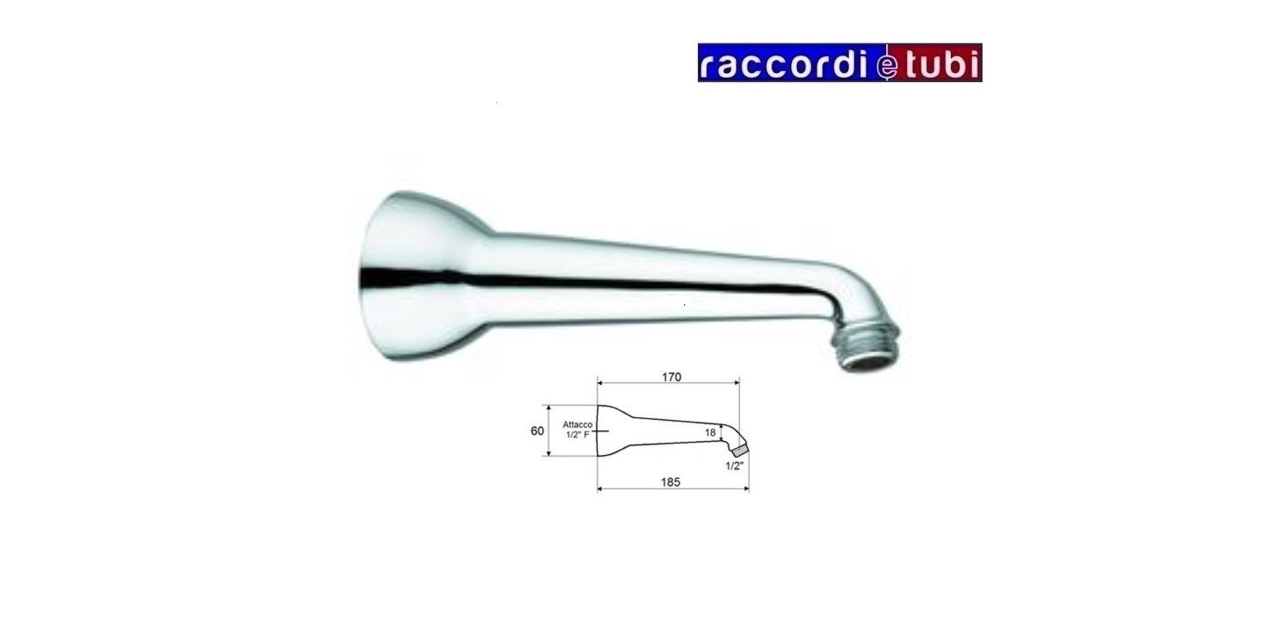 Braccio doccia pesante in ottone cromato CM.18,5 Filettatura Femmina Diametro 1/2