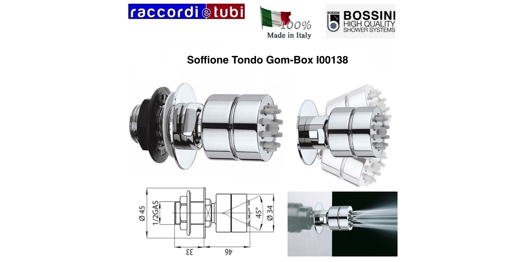Soffione laterale orientabile getto pioggia/nebulizzato autopulente in ottone. Installazione per pannelli doccia