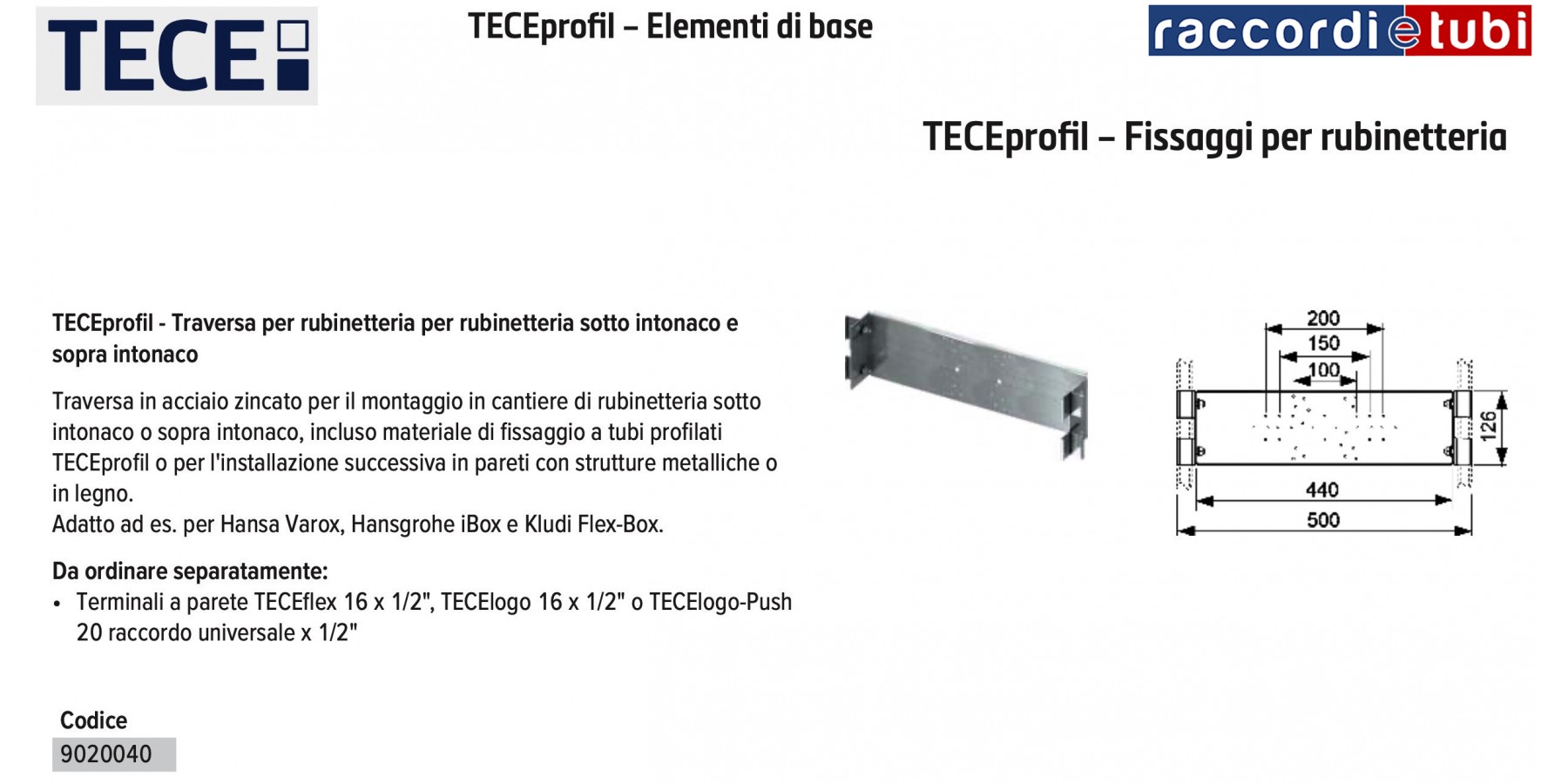 TECEprofil - Traversa per rubinetteria per rubinetteria sotto intonaco e