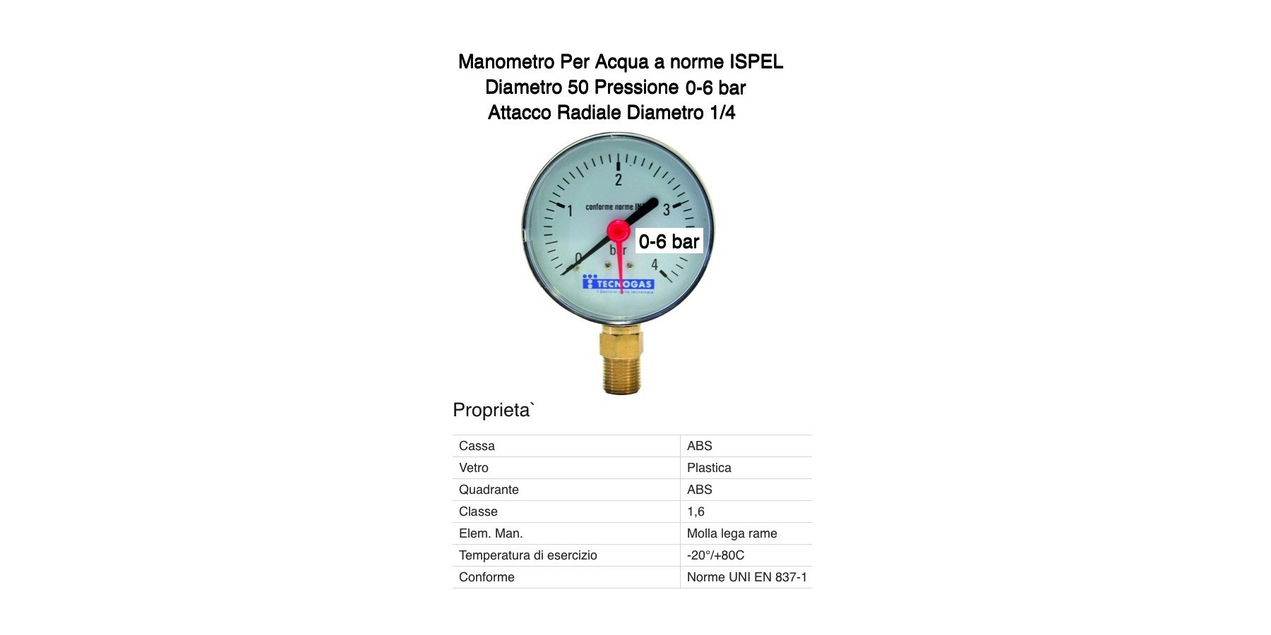 MANOMETRO RADIALE 6bar Diametro 50mm