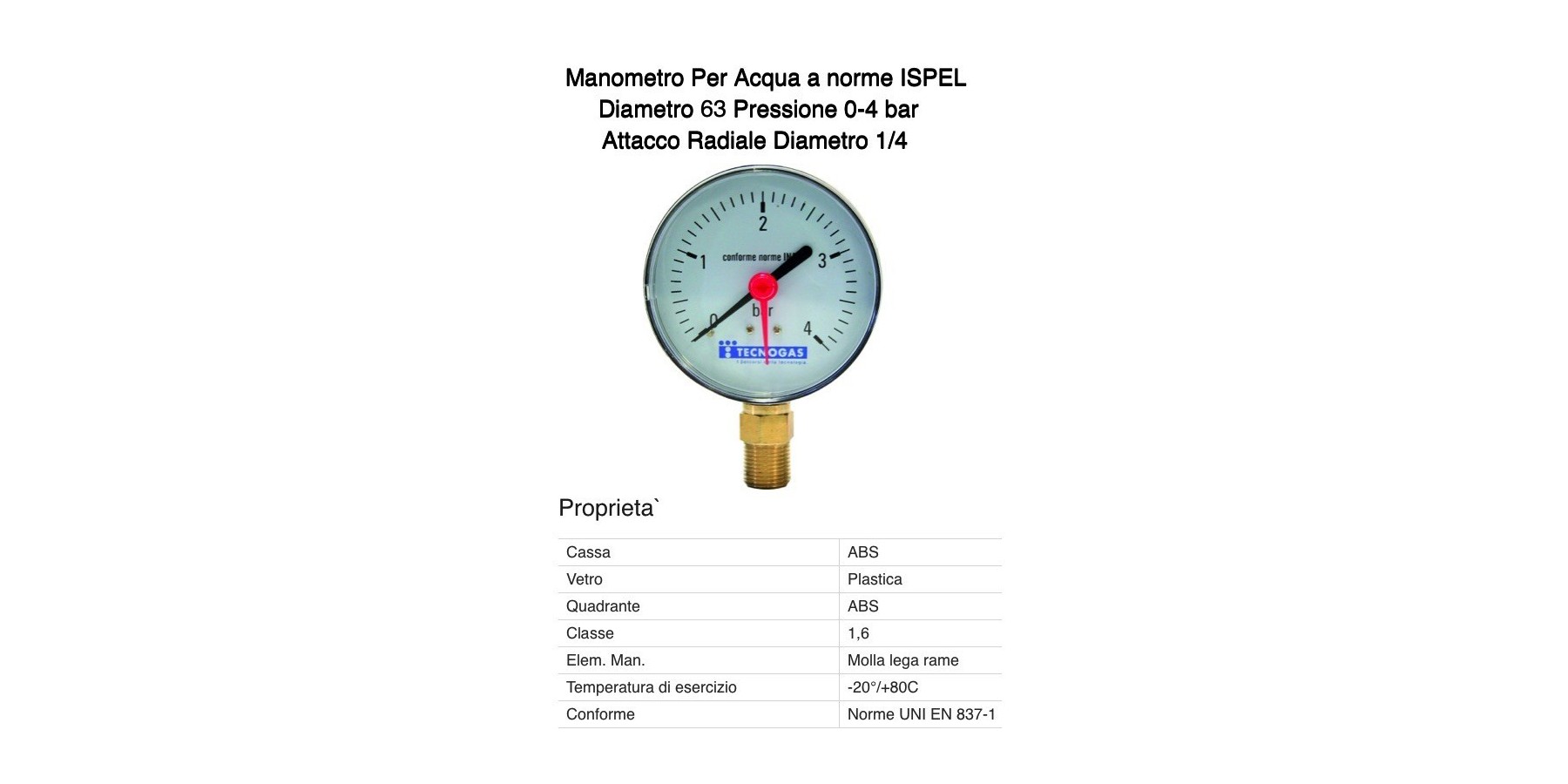 MANOMETRO RADIALE 4bar Diametro 63mm