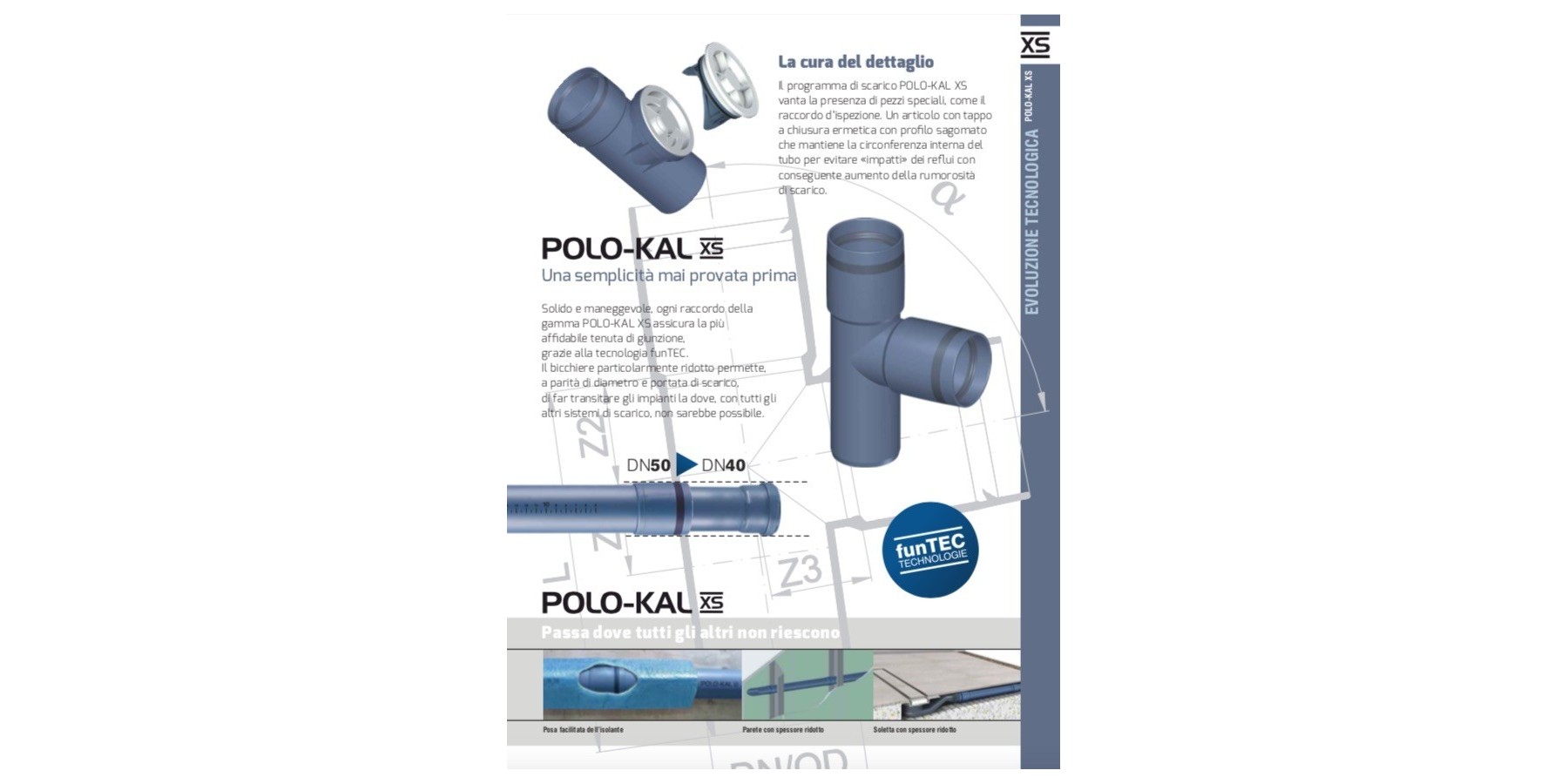 Sistema estremamente maneggevole e rapido da installare grazie alla giunzione ad innesto senza necessità di lubrificazione, con guarnizione elastomerica inserita direttamente nel bicchiere (funTEC technologie). Ciò impedisce qualsiasi possibilità di perdita della guarnizione nelle fasi di stoccaggio, trasporto o posa del materiale. Con il sistema POLO-KAL XS sino a 10 metri di colonna non è richiesto il consueto spazio nel bicchiere per la dilatazione. Il sistema in polipropilene POLO-KAL XS è compatibile alla connessione con altri materiali plastici in PP/PE-HD/PVC nei diametri standard.