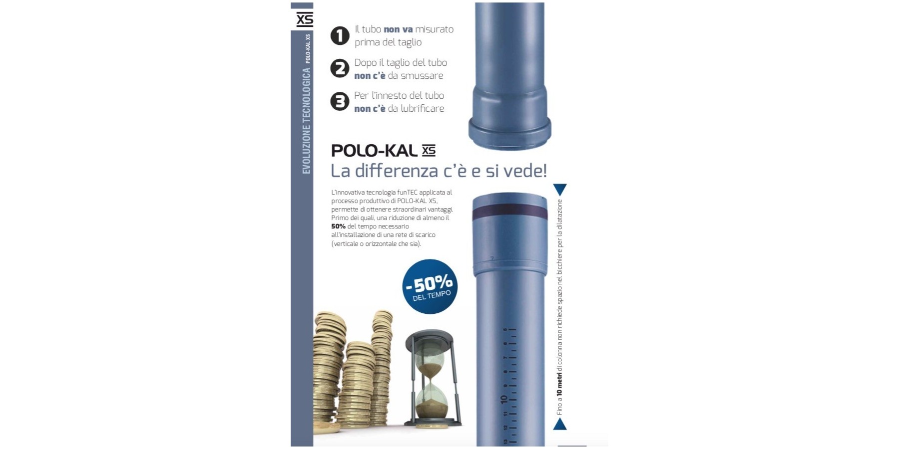 Sistema estremamente maneggevole e rapido da installare grazie alla giunzione ad innesto senza necessità di lubrificazione, con guarnizione elastomerica inserita direttamente nel bicchiere (funTEC technologie). Ciò impedisce qualsiasi possibilità di perdita della guarnizione nelle fasi di stoccaggio, trasporto o posa del materiale. Con il sistema POLO-KAL XS sino a 10 metri di colonna non è richiesto il consueto spazio nel bicchiere per la dilatazione. Il sistema in polipropilene POLO-KAL XS è compatibile alla connessione con altri materiali plastici in PP/PE-HD/PVC nei diametri standard.