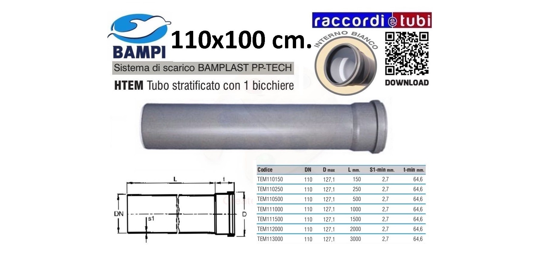 Peso di Kg. 1,071 per un tubo Ø 110 mm. da 1 bicchiere della lunghezza di 1 metro