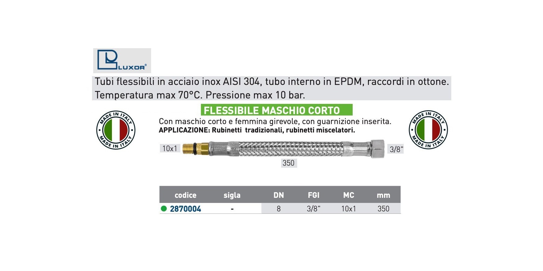 FLESSIBILE PER ACQUA DN 8 FGI 3/8''-Mc 10x1 350mm