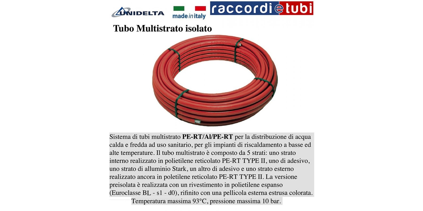Sistema di tubi multistrato PE-RT/AL/PE-RT per la distribuzione di acqua calda e fredda ad uso sanitario. Per gli impianti di riscaldamento a basse e alte temperature.