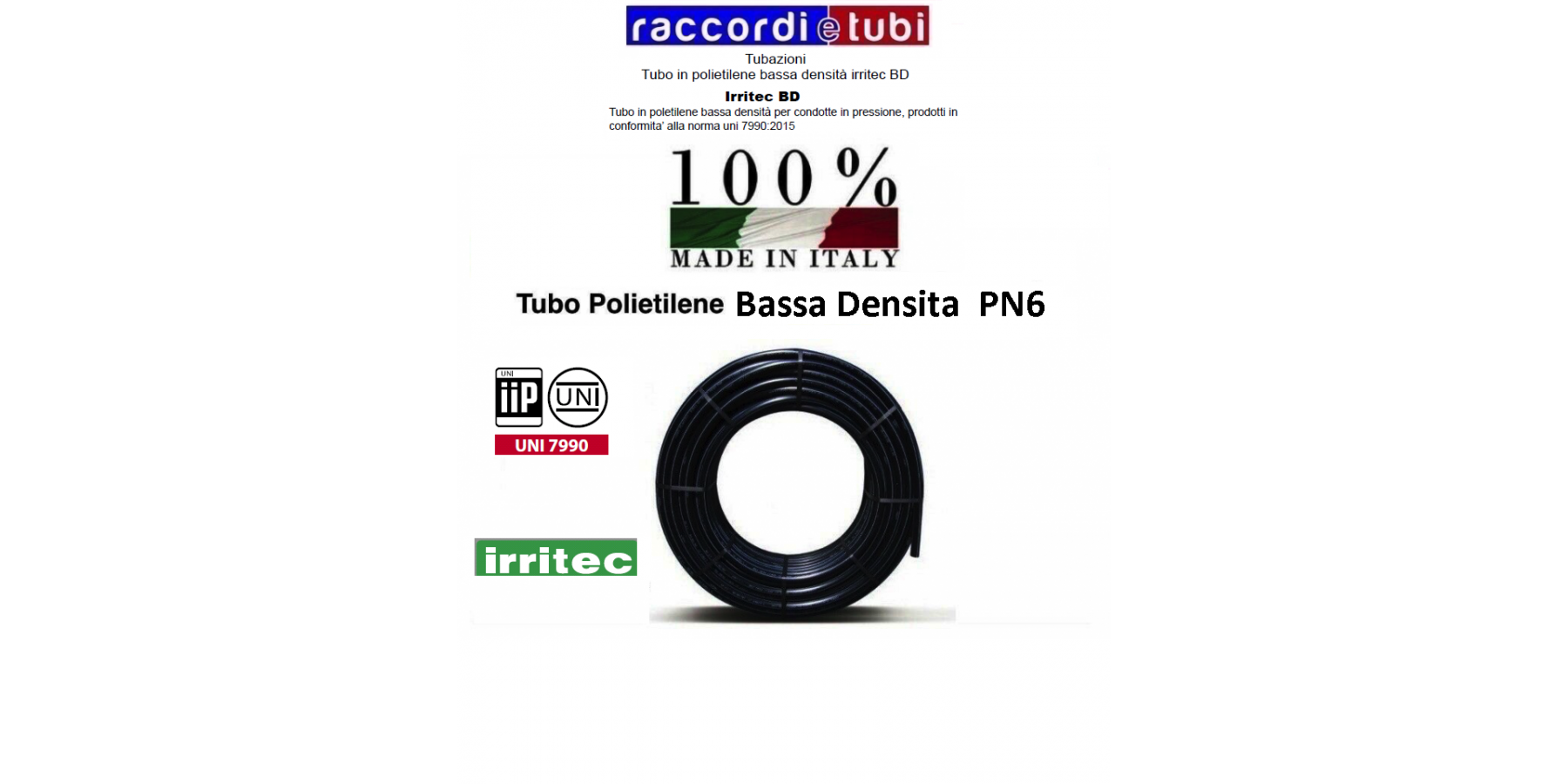 TUBO PN6 BD IRRITEC 100 MT IN POLIETILENE PER ACQUA GIARDINO