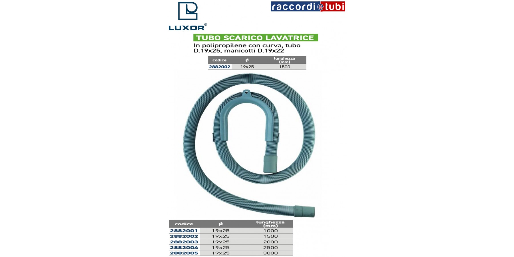 TUBO SCARICO LAVATRICE IN POLIPROPILENE CON CURVA, ALLE DUE ESTREMITA DUE MANICOTTI IN GOMMA,