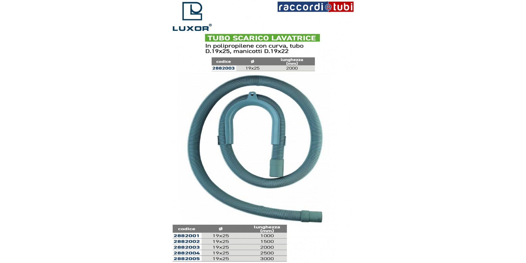 TUBO SCARICO LAVATRICE mm.2000 D.19x22