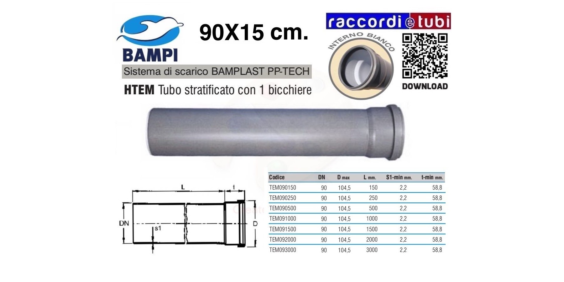 TUBO PP-TECH 1 BICCHIERE 90x15 cm.