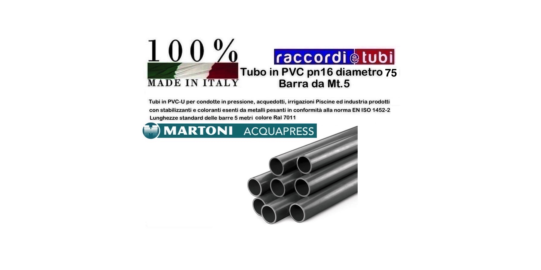 TUBO PVC D.75 PN/16 BARRA DA MT.5