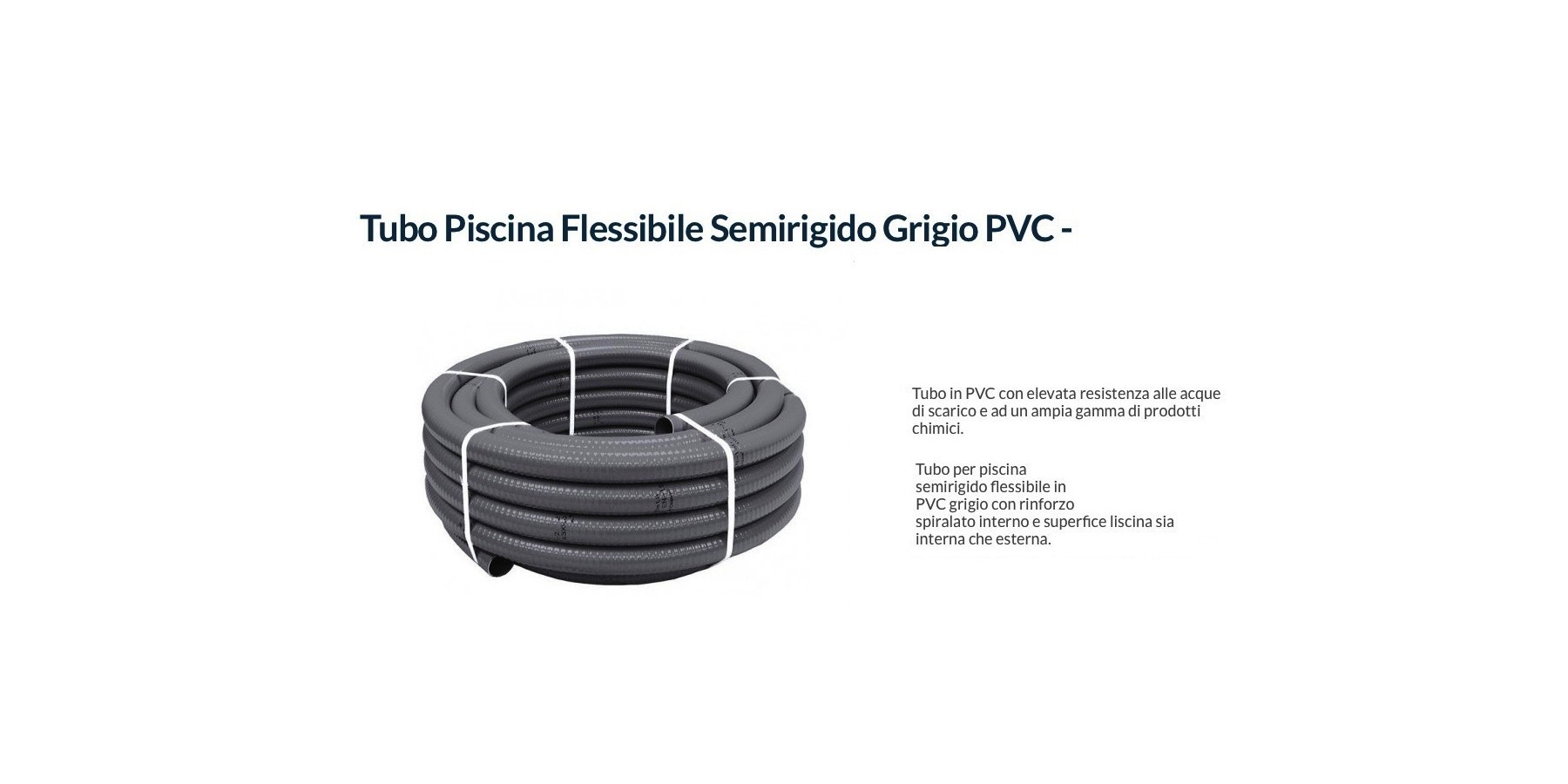 Tubo flessibile semirigido per piscina con elevata resistenza alle acque di scarico e ad un ampia gamma di prodotti chimici.
