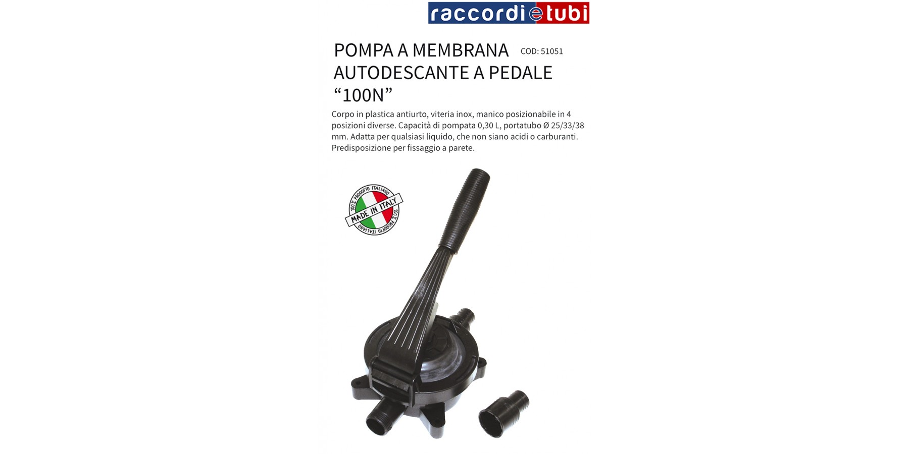 Pompa a membrana autoadescante 100N per acqua dolce, azionabile manualmente.