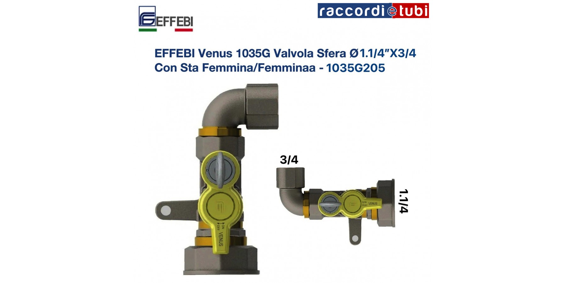 EFFEBI Venus 1035G Valvola Sfera Ø1.1/4"X3/4 Con Sta Femmina/Femmina - 1035G205