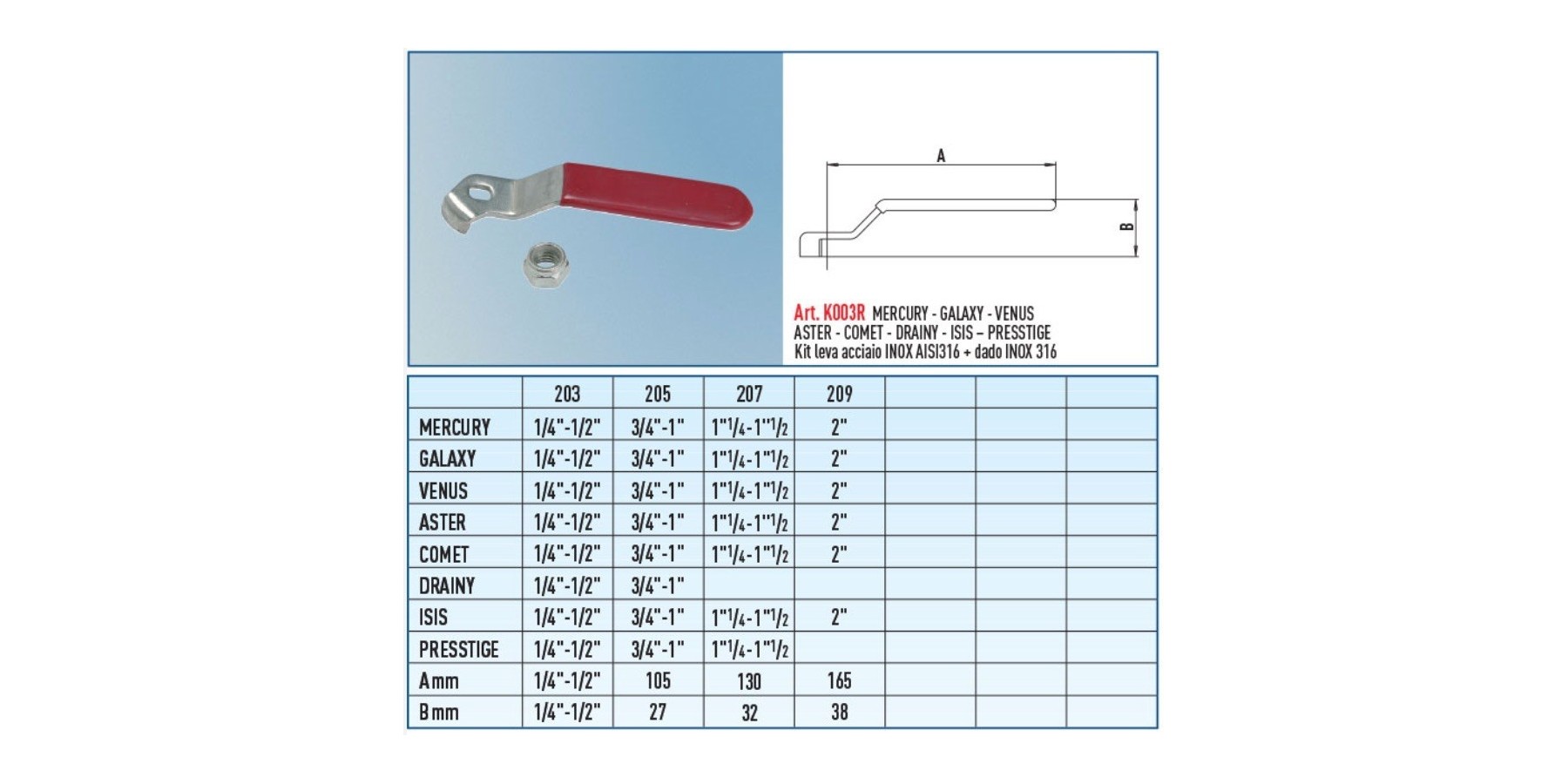 LEVA INOX 316L PER VALVOLE EFFEBI MODELLO ASTER