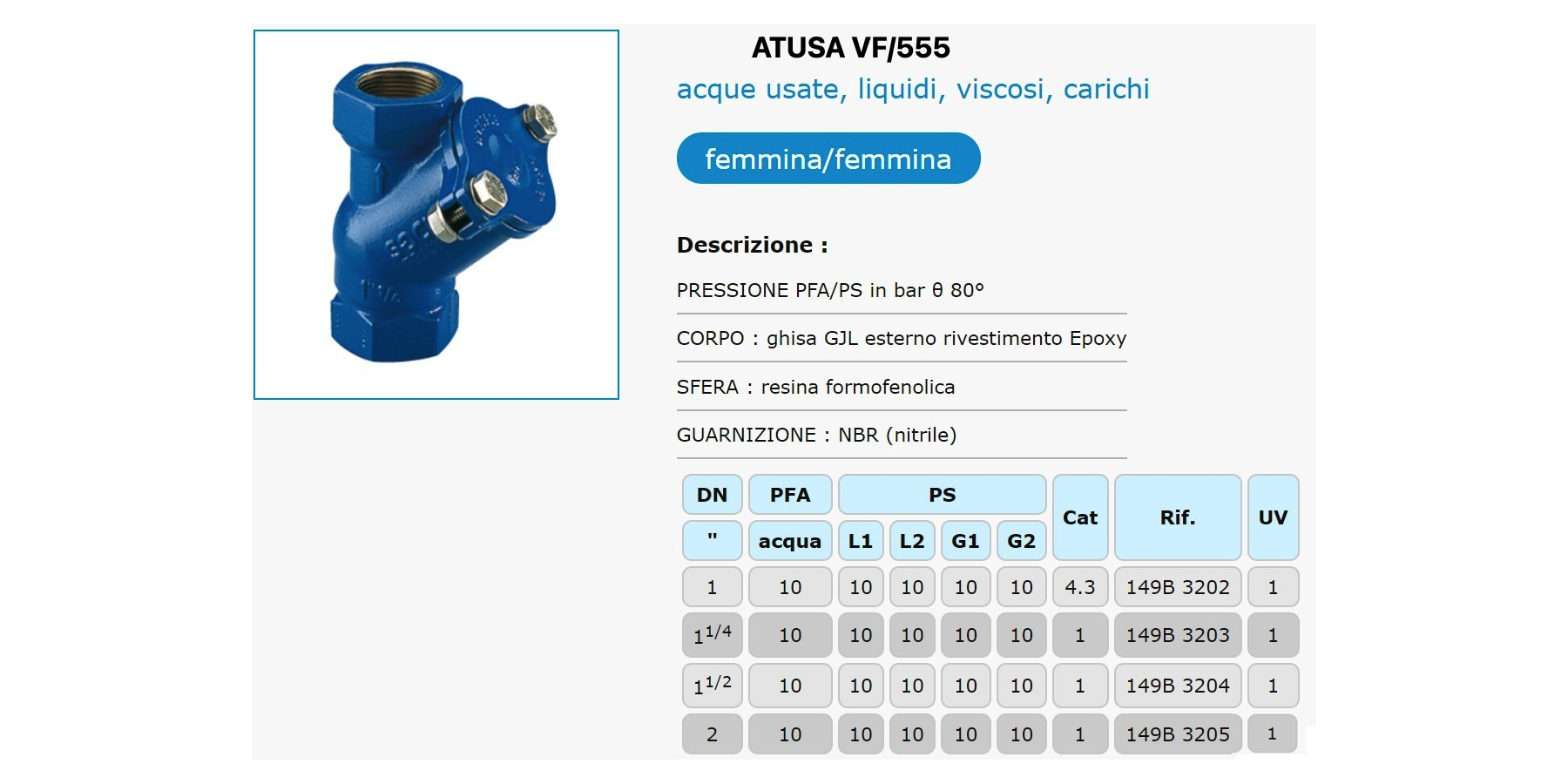 VALVOLA DI NON RITORNO ATUSA A PALLA 2"