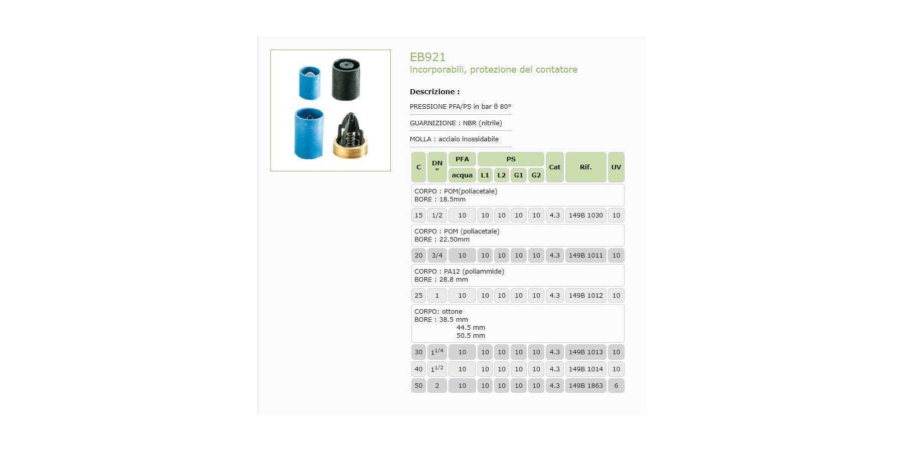 VALVOLA NON RITORNO SOCLA EB921 DIAMETRO 1/2