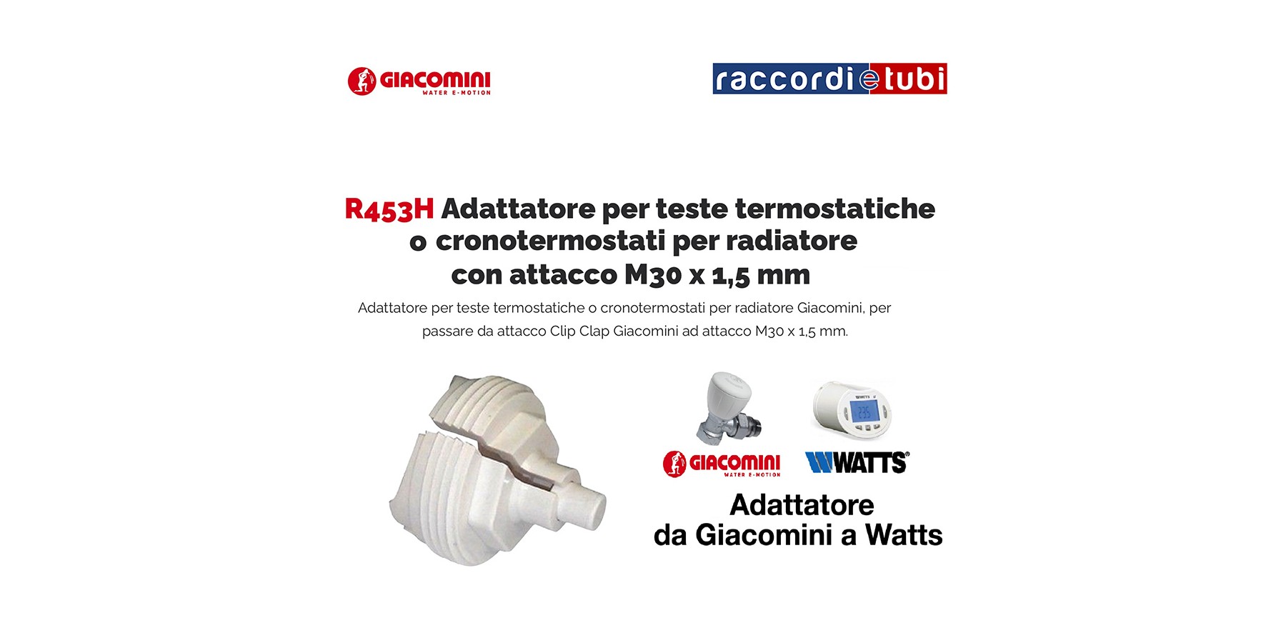 Adattatore per teste termostatiche Giacomini, per passare da attacco Clip Clap Giacomini ad attacco M30 x 1,5 mm.
