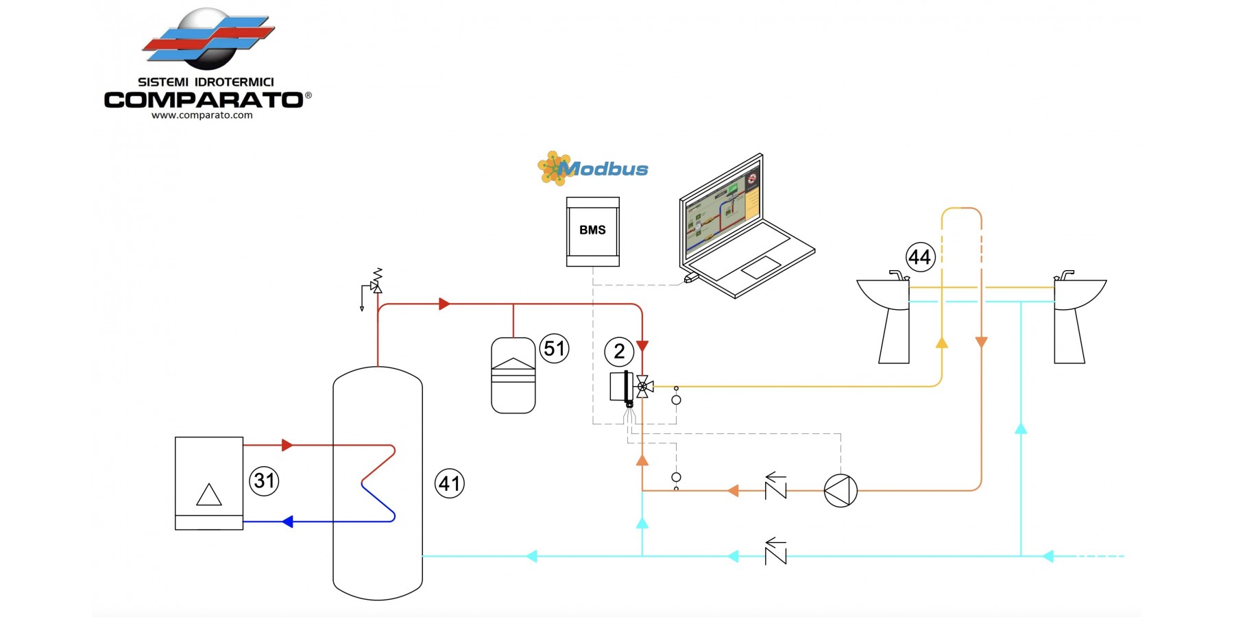 Miscelazione di acqua calda sanitaria in impianti con ricircolo dove sia necessario una disinfezione termica programmata secondo quanto indicato dalle linee guida nazionali per la prevenzione ed il controllo della legionellosi.FUNZIONI